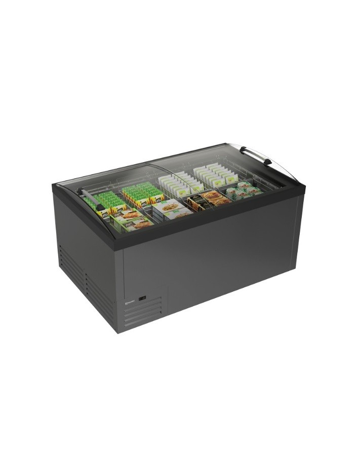 Truhla je určena k prezentaci čerstvých i mražených potravin. Truhla má 2 prosklená zakřivená posuvná víka bez plastových profilů s ergonomickou rukojetí. Viditelnost skladovaných protravin je zajištěna LED osvětlením. Spotřebič disponuje elektronickým termostatem, automatickým odtáváním horkým vzduchem. Stálost teploty v chlazeném prostoru je zvýšena 90 mm izolací.