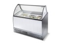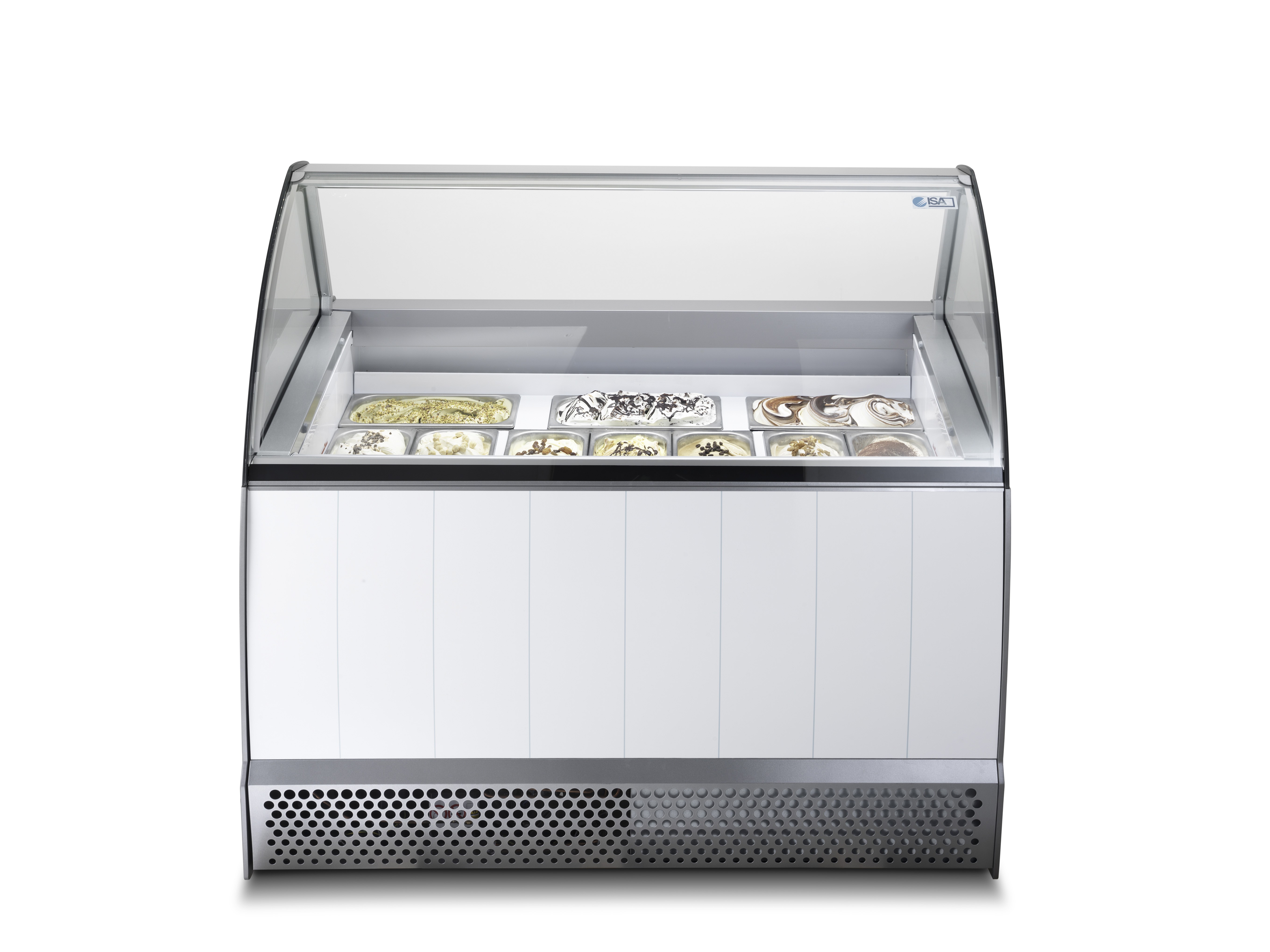 Profesionální výdejník kopečkové zmrzliny s oblou skleněnou nástavbou a maximálním vnitřním objemem 300l. Výdejník je určen k prodeji a prezentaci kopečkové zmrzliny. Výdejník nabízí prostor pro vystavování, až 9 druhů zmrlin. Toto množství naprosto dostačuje většině gastronomických provozů. Svou velikostí je výdejník určen vetším a středně velkým provozům.