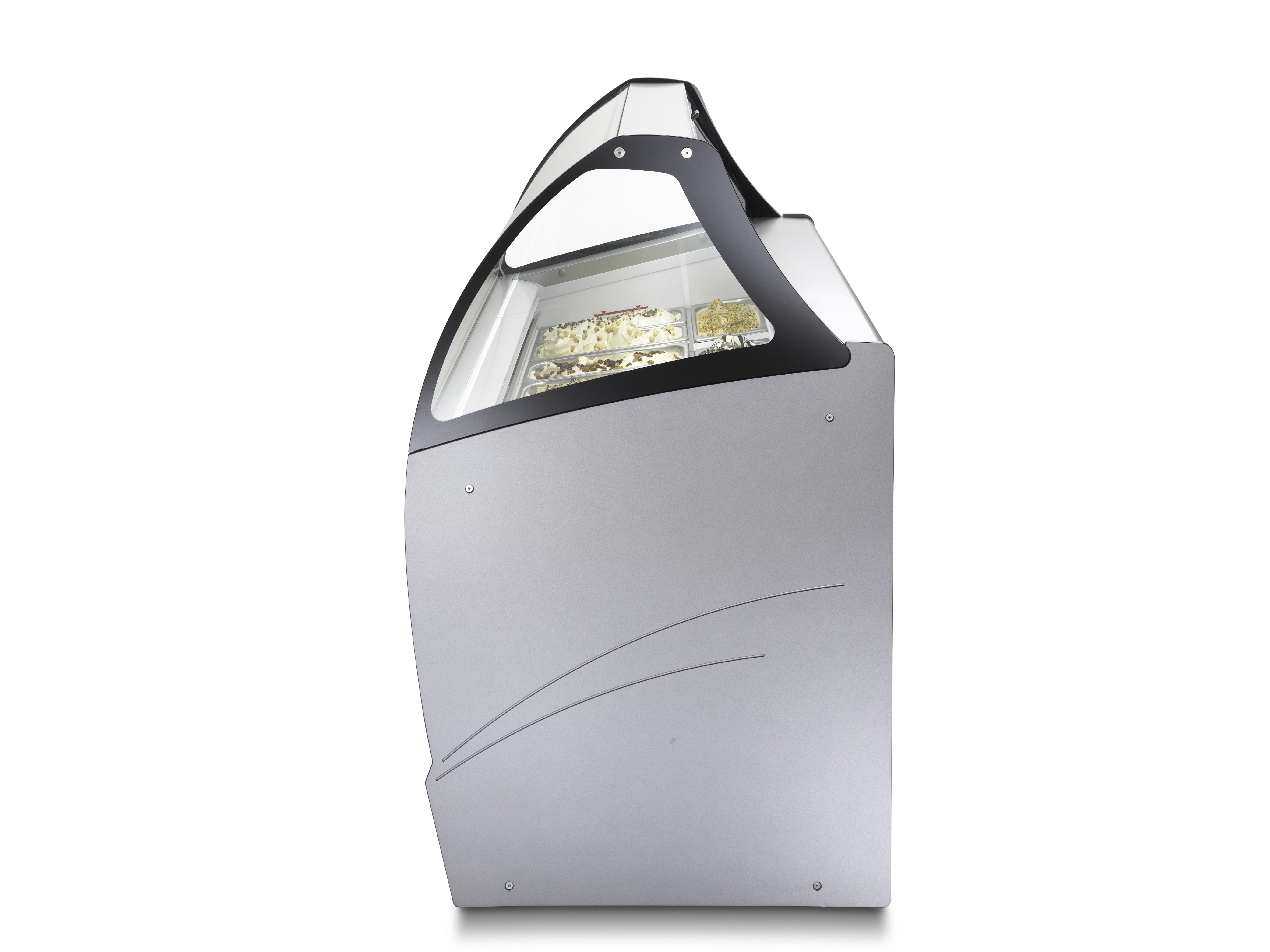 Profesionální výdejník kopečkové zmrzliny s oblou skleněnou nástavbou a maximálním vnitřním objemem 395l. Výdejník je určen k prodeji a prezentaci kopečkové zmrzliny. Výdejník nabízí prostor pro vystavování, až 13 druhů zmrlin. Toto množství uspokojí i ty nejnáročnejší zákazníky. Svou velikostí je výdejník určen velkým gastronomickým provozům a specializovaným zmrzlinárnám.