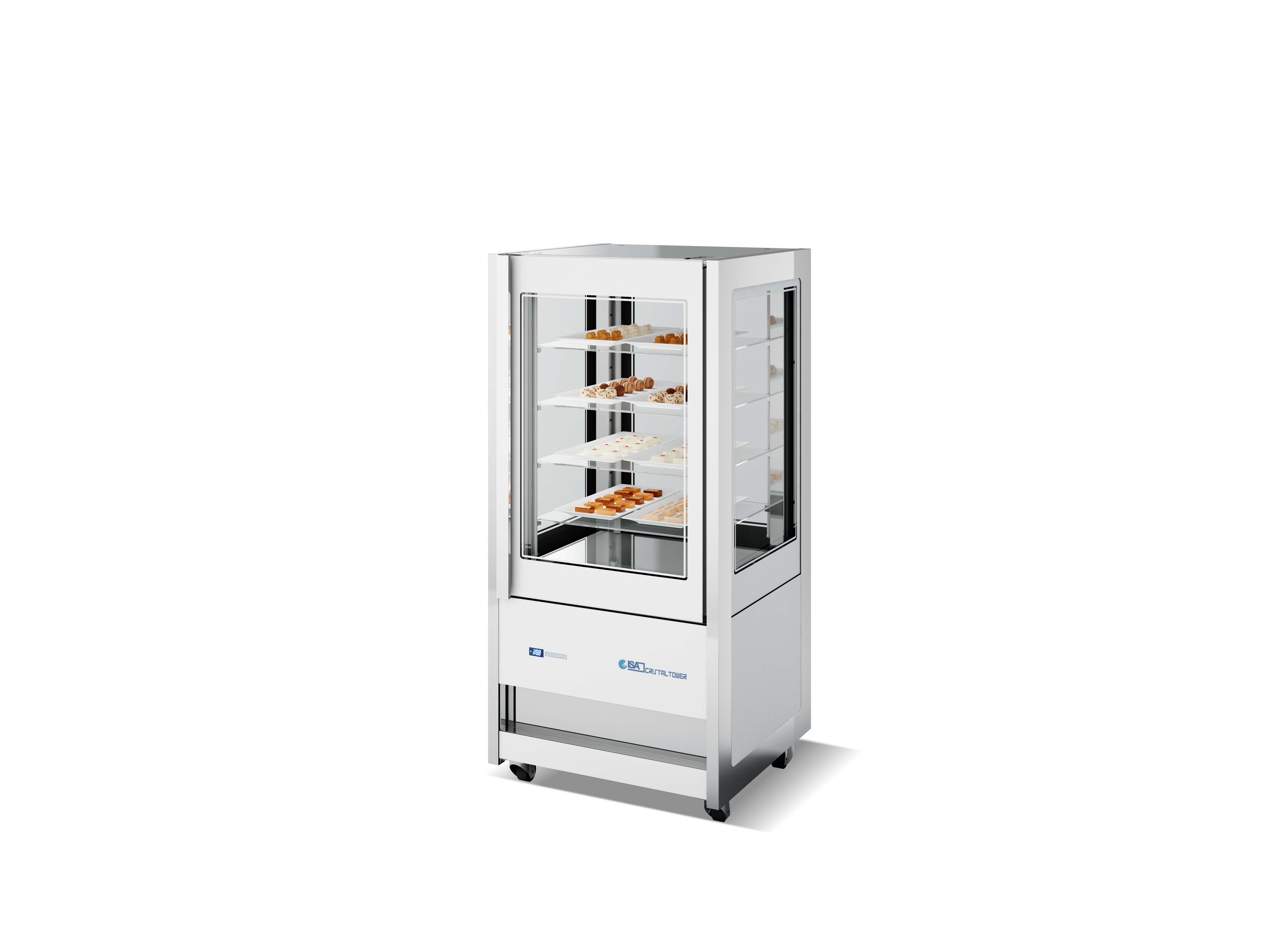 Celoprosklená univerzální vitrína renomované značky ISA s vnitřním objemem 243 l. Vitrína je vhodná pro vystavení a prodej čerstvých produktů, různých zákusků, nápojů, mražených dezertů a zmrzliny.