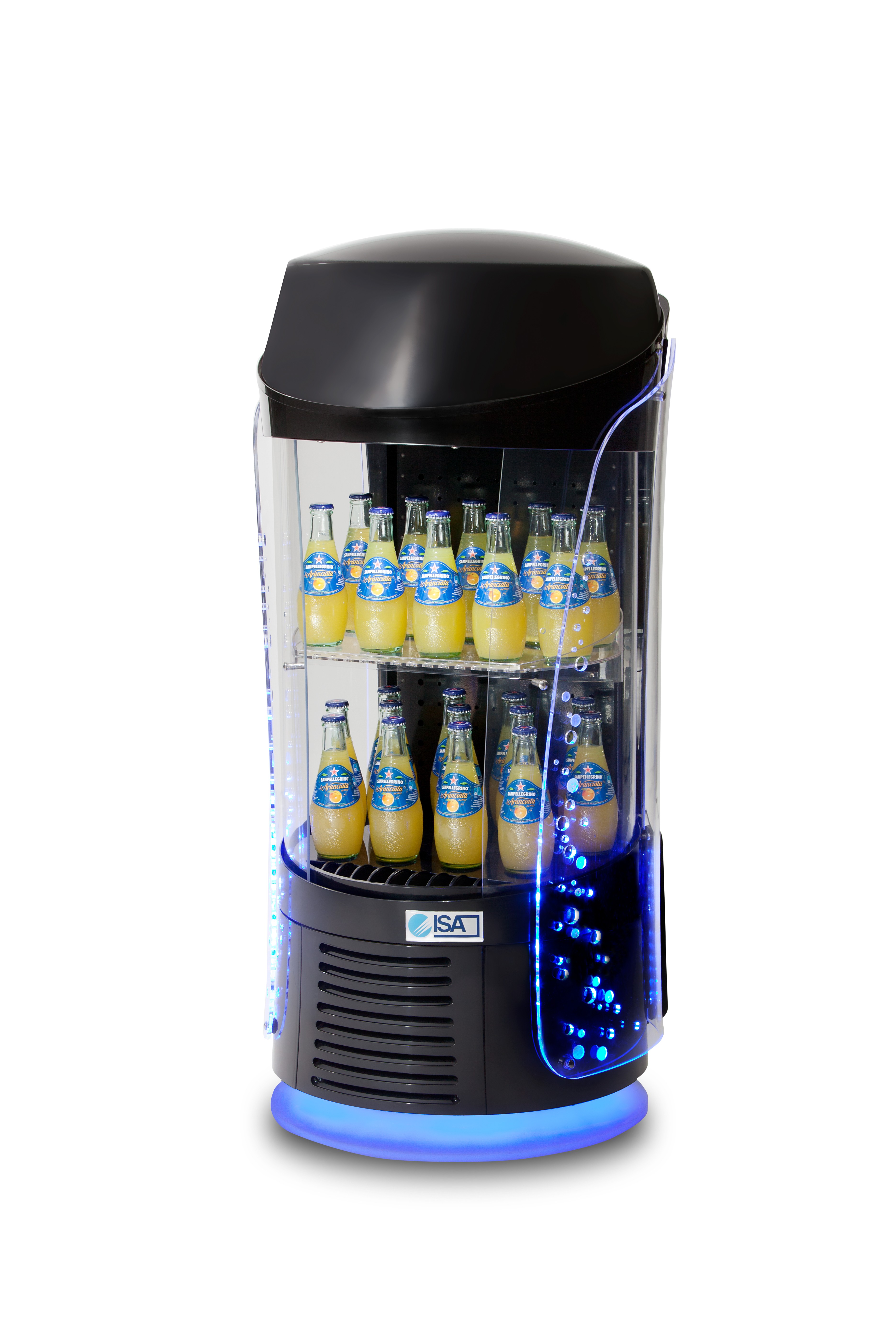 Výstavní otevřená nápojová chladnička o objemu 40 l. Chladnička má vnitřní LED osvětlení, 1 fixní polici.