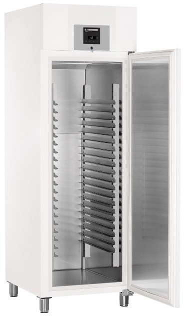 Mraznička Liebherr BGPv 6570 Profiline na pekařské plechy s dynamickým chlazením. Vnější plášť je z oceli s bílým práškovým nástřikem a vnitřním plášť z nerezové oceli. Uzamykatelné, samozavírací dveře mají vyměnitelné těsnění, které si snadno a zcela bez nářadí zvládnete vyměnit sami. Dveře mají zaměnitelný pant, chladnička se tak dokonale přizpůsobí místu instalace. Integrované madlo do dveří zajistí snadné otevírání.