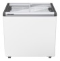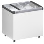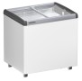 Impulsní mrazicí truhla EFE 2252 s rovným posuvným skleněným víkem, které je vyrobeno z tvrzeného bezpečnostního skla je nerozbitné, zatížitelné a poskytuje tak stabilitu v horní části pultu. Díky profilovanému těsnění a plastovému rámu, který je vyhříván horkým plynem, lze s víkem snadno pohybovat a zabraňuje zamlžení skla. Kromě snadné manipulace je víko opatřeno horní hliníkovou pracovní deskou, která je odolná proti poškrábání. Alternativou ke skleněnému víku je plně posuvné víko izolované pěnou. Zástrčkový zámek lze dodat jako příslušenství.
