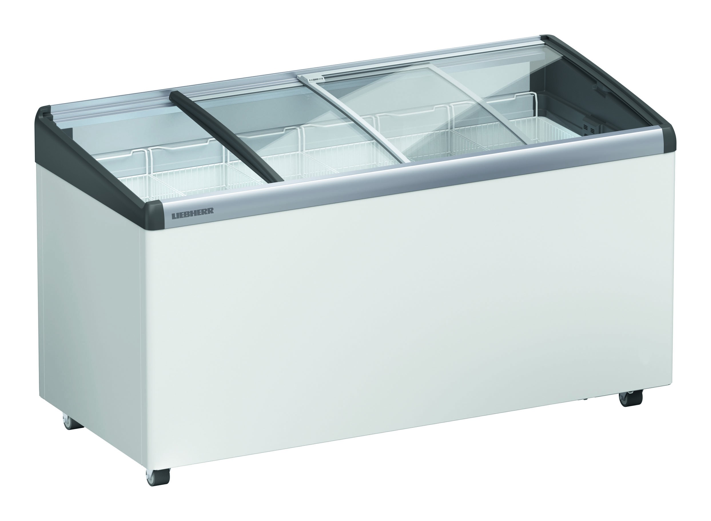 Impulsní mrazicí truhla EFI 4853 s mírně zkoseným posuvným skleněným víkem, které je vyrobeno z tvrzeného bezpečnostního skla je nerozbitné, zatížitelné a poskytuje tak stabilitu v horní části pultu. Díky profilovanému těsnění a plastovému rámu, který je vyhříván horkým plynem, lze s víkem snadno pohybovat a zabraňuje zamlžení skla. Kromě snadné manipulace je víko opatřeno horní hliníkovou pracovní deskou, která je odolná proti poškrábání. Alternativou ke skleněnému víku je plně posuvné víko izolované pěnou. Zástrčkový zámek lze dodat jako příslušenství.