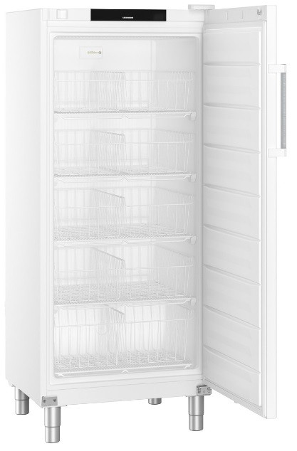 Volně stojící mraznička FFFsg 5501 Performance se statickým chlazením. Uzamykatelné plné dveře od 90° zůstanou otevřeny, což zajistí snadné plnění či vyprázdnění chladničky. Při otevření do úhlu 90° se dveře samy zavřou, aby nezůstaly otevřeny omylem. Vnější plášť je bílý. Vnitřní obložení je vyrobeno z ekologického polystyrenu, který je bezpečný pro styk s potravinami.