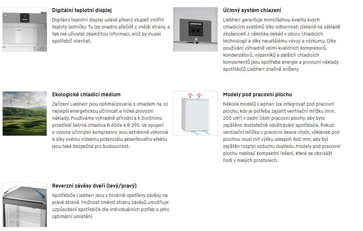 Digitální teplotní displej udává přesný stupeň vnitřní teploty ledničky. Tu lze snadno přečíst z vnější strany, aniž by se musel spotřebič otevírat. Spotřebič automaticky odmrazuje v době, kdy je kompresor v nečinnosti. Ruční odmrazování proto již není nutné.