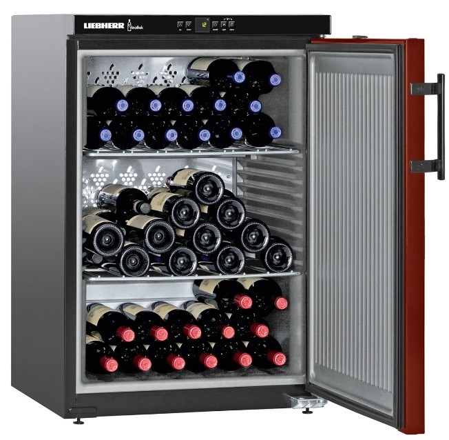 Korkové zátky zůstanou v dobrém stavu s funkcí HumiditySelect lze regulovat vlhkost ve dvou úrovních standartní nebo vysoká. V prostředí s optimální vlhkostí zůstanou korkové zátky navlhčené a láhve dobře utěsněné. Skladování bez vibrací díky speciálně vyvinutým, mimořádně tichým kompresorům a pevné police zajistí u všech chladniček šetrné skladování vín. Všechny vinotéky Liebherr vybaveny filtrem s aktivním uhlím, který spolehlivě váže všechny druhy pachů. Vína si tak zachovají svůj originální buket. 3 rošty z pozinkované oceli zajistí pohodlné uskladnění pro 66 lahví Bordeaux 0,75 l.