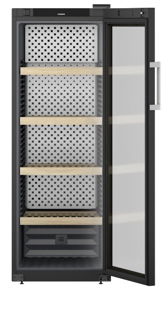 Skladování bez vibrací díky speciálně vyvinutým, mimořádně tichým kompresorům a pevné police zajistí u všech chladniček šetrné skladování vín. Všechny vinotéky Liebherr vybaveny filtrem s aktivním uhlím, který spolehlivě váže všechny druhy pachů. Vína si tak zachovají svůj originální buket. A aby tuto skutečnost nic neohrozilo ani z dlouhodobého hlediska, spotřebič vás každých 6 měsíců upozornění na nutnost výměny filtru, kterou hravě zvládnete sami. Vysokou variabilitu vnitřního prostředí zajistí 5 výškově nastavitelných dřevěných polic na plynulých pojezdech. Do vinotéky lze dát až 196 lahví Bordeaux 0,75 l.