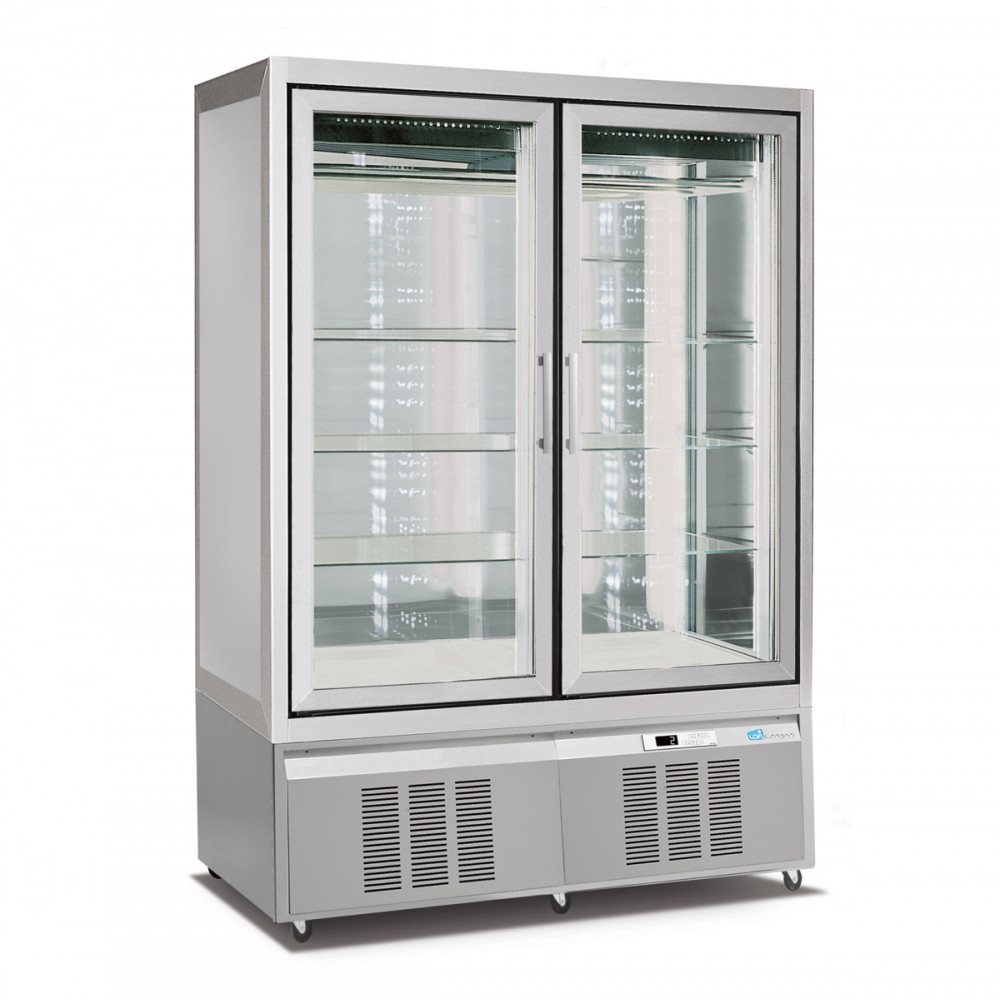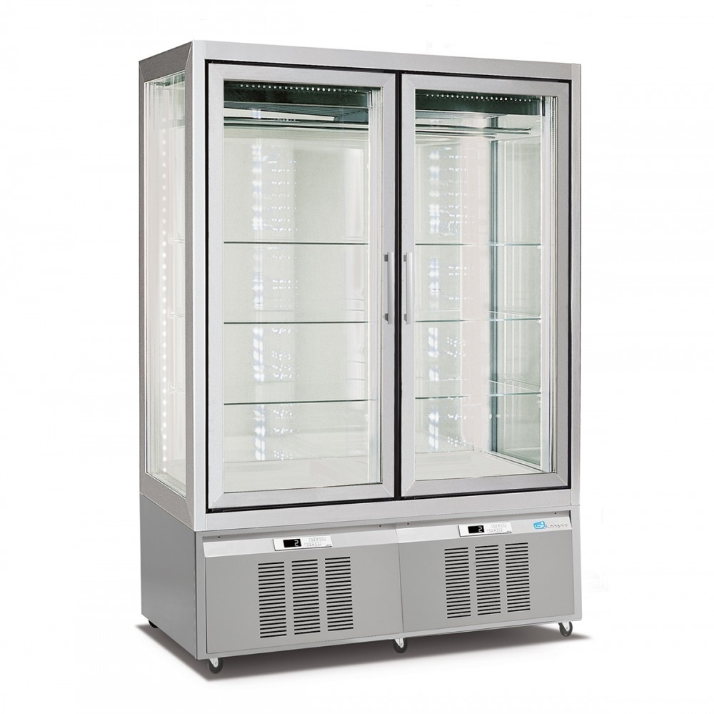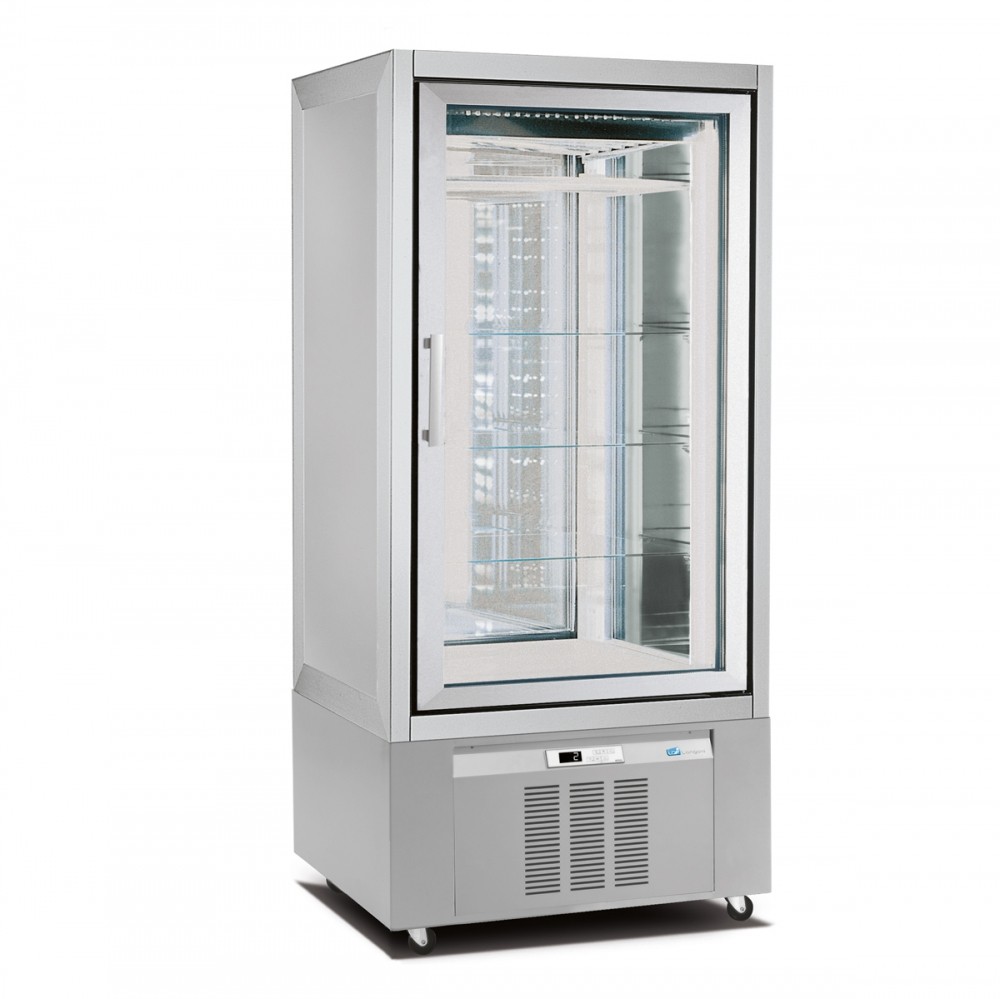 Luxusní vitrína s oběhovým chlazením na maso. Řada Classica je dlouhodobě nejspolehlivější výrobek ve své kategorii na trhu. Řada Classica byla v nedávné době modernizována, aby splňovala dnešní ekologické, marketingové a estetické požadavky. Vitrína v sobě kombinuje moderní technologie a kvalitní materiály, které podporují výbornou viditelnost vystavaných produktů a maximálně usnadní obsluhu a údržbu. Vitrína je vyrobena z kombinace nerezové oceli, lakované oceli (standartně ve stříbrné barvě), eloxovaného hliníku a skla. Na přání zákazníka je možné vitrínu dodat v různých barvách. Vitrína je standartně dodávaná s prosklenými, křídlovími dveřmi z izolačního trojskla, ale je možné ji dodat i v celoprosklené verzi. Vitrína je dodávanás 5 nastavitelnými, drátěnými policemi. Model M1 400 - 3901 je vybaven 6 otočnými, prosklenými policemi.