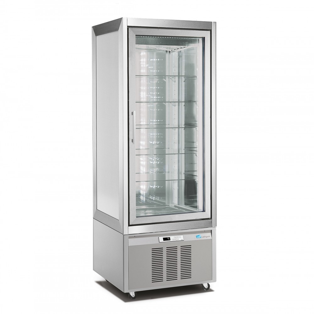 Luxusní vitrína se statickým chlazením pro cukrářské výrobky. Řada Classica je dlouhodobě nejspolehlivější výrobek ve své kategorii na trhu. Řada Classica byla v nedávné době modernizována, aby splňovala dnešní ekologické, marketingové a estetické požadavky. Vitrína v sobě kombinuje moderní technologie a kvalitní materiály, které podporují výbornou viditelnost vystavaných produktů a maximálně usnadní obsluhu a údržbu. Vitrína je vyrobena z kombinace nerezové oceli, lakované oceli (standartně ve stříbrné barvě), eloxovaného hliníku a skla. Na přání zákazníka je možné vitrínu dodat v různých barvách. Vitrína je standartně dodávaná s prosklenými, křídlovími dveřmi z izolačního trojskla, ale je možné ji dodat i v celoprosklené verzi. Vitrína je dodávané s 5 nastavitelnými, prosklenými policemi. Model M1 400 - 3701 je vybaven 6 otočnými, prosklenými policemi.