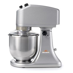 Planetárníuniversání mixér Minneapolis Plutone 7. Tělo je vyrobeno z hliníkové slitiny. Výklopná hlava pro snadné vyjmutí nádoby, nástavců a snadně čištění. Nádoba z nerezové oceli. Na hlavě je umístěn bezpečnostní mikrospínač. Obsah nádoby je 7 l. Nádoba s krátkou odklopnou krytkou z plexiskla s plnicím otvorem. Maximální doporučená zátěž je 1kg mouky. Součástí dodávky jsou 3 nástavce ( šlehací, hnětací a plochý ). Hnětač je vhodný pro řídká a středně hustá těsta. Není určen pro tuhá těsta !