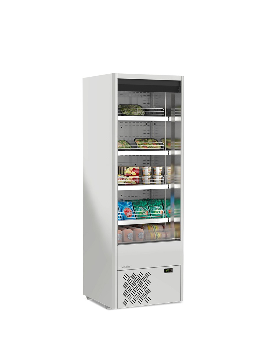 Vitrína je vhodná pro vystavení čerstvého masa, mléčných výrobků nebo nápojů a dalších chlazených balených výrobků. Teplotu lze upravit dle potřeby. Čtyři police o hloubce 34,5 cm nabízejí možnost naklápění, aby poskytly další výstavní možnosti. Zvýraznění vystavovaných produktů zajišťují postranní stěny v zrcadlovém provedení.