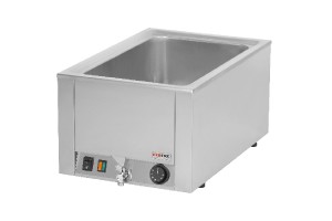 Vodní lázeň v celonerezovém provedení z lisované oceli AISI 304. Vnitřní rohy vany jsou zaoblené pro snadné čištění. Do vodní lázně se vkládjní GN až do velikosti GN 1/1 - 150. Teplotu ve vodní lázni lze regulovat v rozmezí 30 až 90 °C. Topné těaso se nachází pod dnem vany. Lázeň má výpustný kohout v přední části.