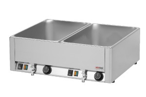 Vodní lázeň v celonerezovém provedení z lisované oceli AISI 304. Vnitřní rohy vany jsou zaoblené pro snadné čištění. Do vodní lázně se vkládjní GN až do velikosti GN 1/1 - 150. Teplotu ve vodní lázni lze regulovat v rozmezí 30 až 90 °C. Topné těaso se nachází pod dnem vany. Lázeň má výpustný kohout v přední části.