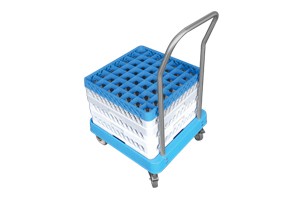 Plastový vozík pro převoz mycích košů. Vozík je vybaven 4 kolečky ( 2x s brzdou a 2x bez brzdy ). Průměr koleček je 100 mm. Vozík je určen pro koše velikosti 500x500 mm. Výška madla od zěmě je 920 mm. Vozík je dodáván v rozebraném stavu a vyžaduje montáž.