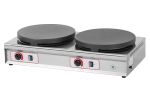 Profesionální palačinkovač v celonerezovém provedení s litinovou, smaltovanou plotnou. Plotná má průměr 350 mm. Teplotu lze snadno regulovat v rozmezí 50 / 270 °C. Palačinkovač má kontrolku chodu a vyhřátí.