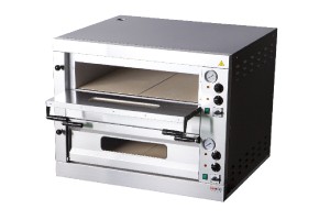Profesionální dvoukomorová pec na pizzu v celonerezovém provedení. Pec je vhodná do provozů s větším výdejem pizz. Pec má dvě komory s šamotovou deskou o síle 14 mm, která je vhodná pro přípravu čerstvých pizz. Do každé komory se vejde 4x pizza o průmeru 33 cm. Dveře komor jsou prosklené a vnitřek komor je osvětlen pro co nejlepší vizuální kontrolu výrobku. Teplota v komorách je regulovatelná v rozmezí 50 až 450°C navíc májí komory teploměr pro snadnou kontrolu teploty. Pec má standartně zabudovaný odvod par, který je regulovatelný.
