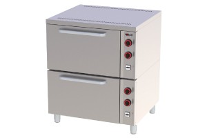Profesionální dvoukomorová pekařská pec. Pec má statický ohřev a teplotu lze regulovat v rozmezí 50 až 300°C. Horní i spodní topná tělesa lze regulovat samostatně pro každou komoru. Do každé komory se vejde 1x GN 2/1.