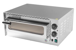 Jednokomorová pec na pizzy v celonerezovém provedení. Pec je vhodná do provozů s menším výdejem pizz. Pec má jednu komoru s šamotovou deskou, která je vhodnější pro přípravu čerstvých pizz a malého občerstvení. Do komory se vejde 1x pizza o průměru 35 cm. Dveře komory jsou presklené pro lepší vizuální kontrolu výrobku. Komora má samostatné ovládání pro každé topné těleso. Teplotu lze regulovat v rozmezí 50 až 300°C.