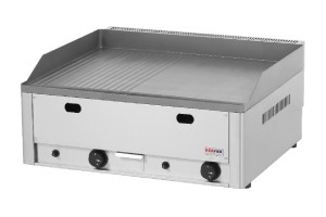 Profesionální plynová grilovací deska v celonerezovém provedení s rovnou ocelovou deskou o síle 10 mm. Předností desky je výborné vedení tepla. Deska je rozdělená na 2 samostatně ovladané zóny. Deska je svařená s rámem, splňuje tak nejvyšší požadavky na hygienu a údržbu zařízení. Přístroj je vybaven zapalováním Piezzo, vysokokapacitní zásuvkou na odpadní tekutiny a lopatkou. Standartně je přístroj dodáván v provedení na propan butan + nahradní tryska na zemní plyn.