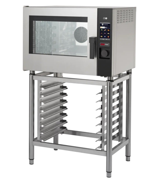 Profesionální konvektomat v celonerezovém provedení a prosklenými křídlovými dveřmi s černým madlem (otevírání v levo). Vnitřní komora má zaoblené rohy pro zajištění maximální hygieny a snadné údržby. Vnitřní prostory jsou uzpůsobeny pro 5 GN ve velikosti 1/1. Dveře mají bezpečnostní rozebíratelné dvojsklo.