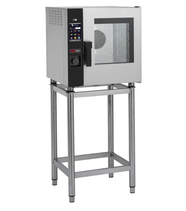 Profesionální konvektomat v celonerezovém provedení a prosklenými křídlovými dveřmi s černým madlem (otevírání v pravo). Vnitřní komora má zaoblené rohy pro zajištění maximální hygieny a snadné údržby. Vnitřní prostory jsou uzpůsobeny pro 5 GN ve velikosti 2/3. Dveře mají bezpečnostní rozebíratelné dvojsklo.