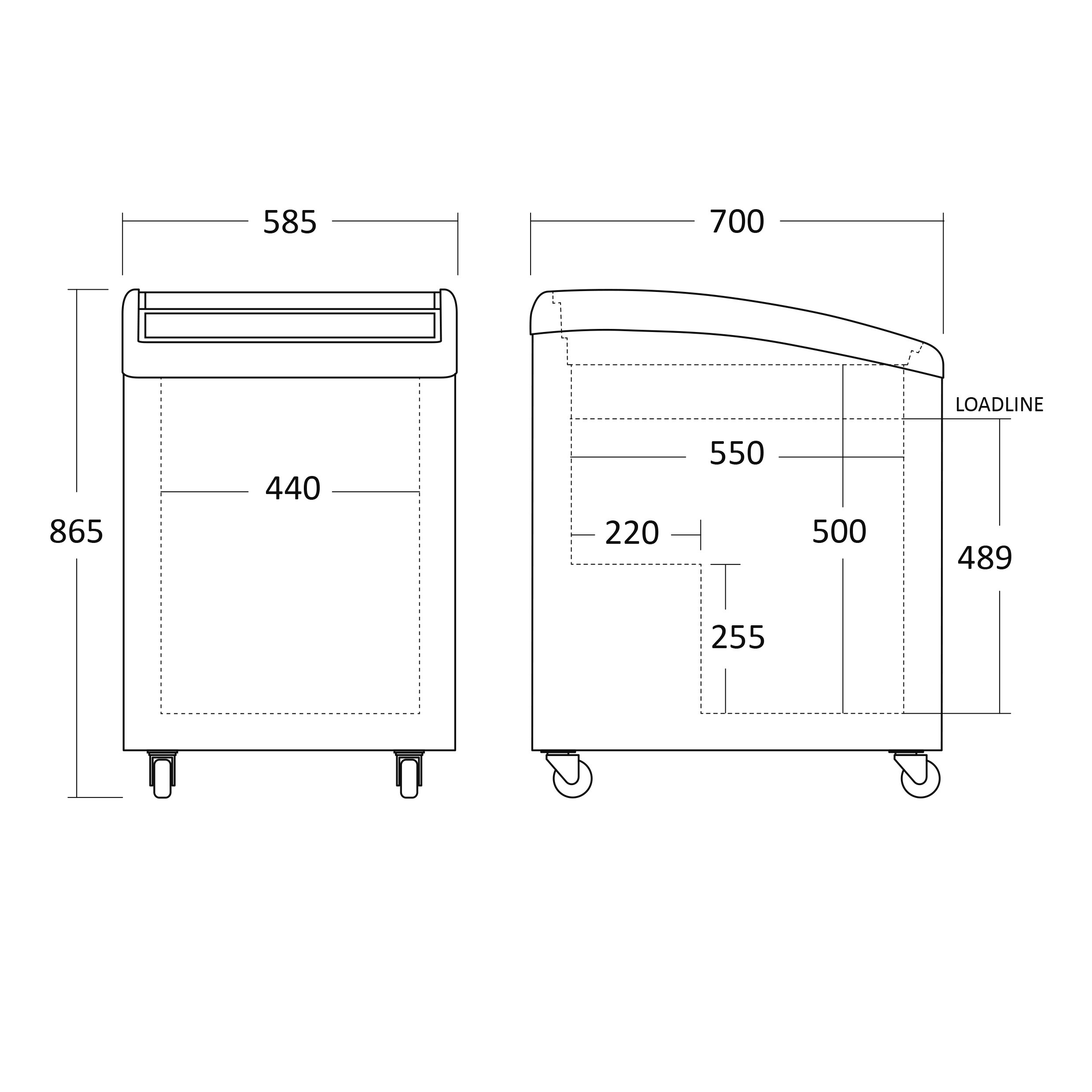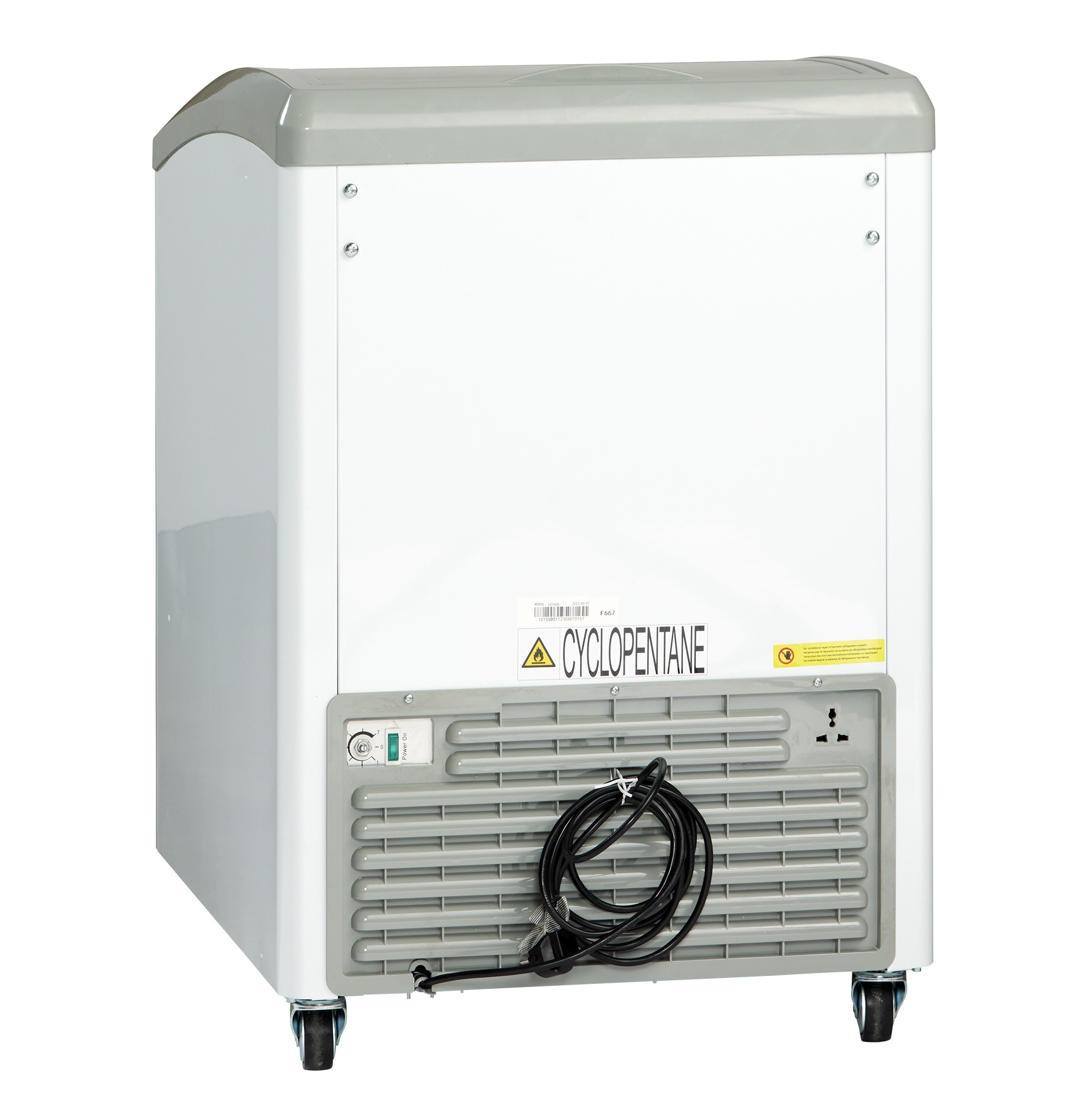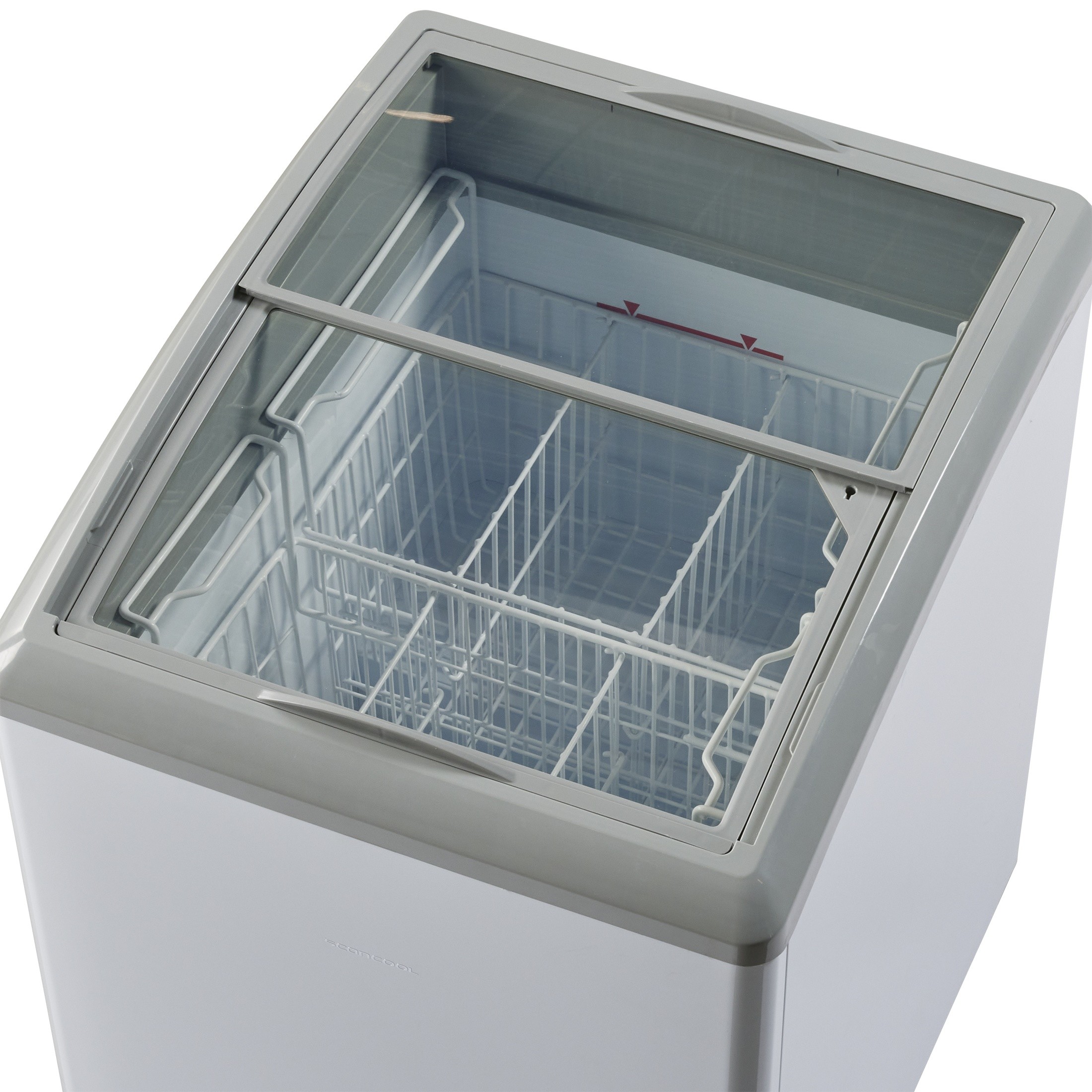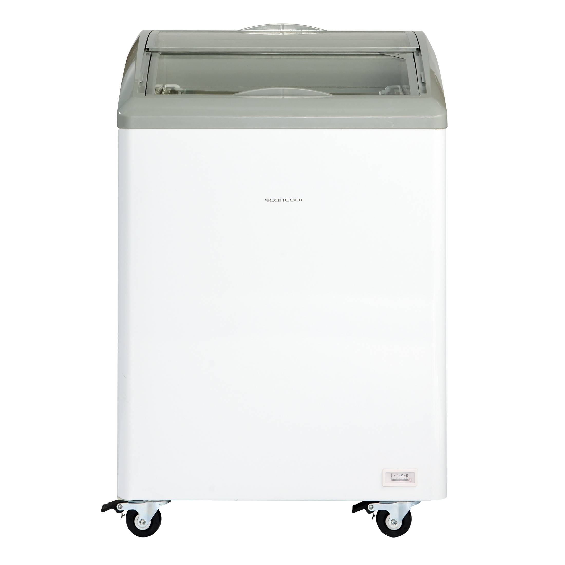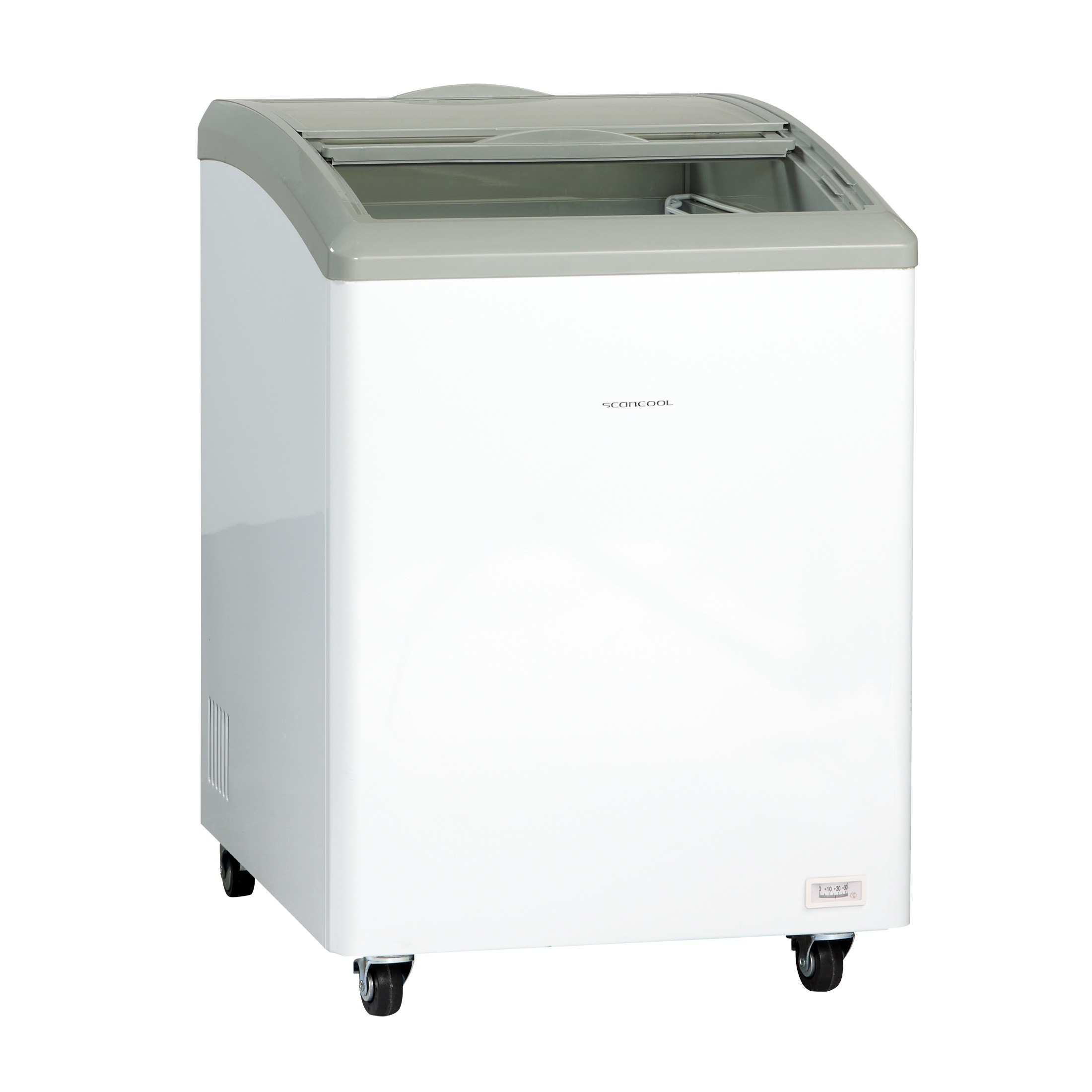 Úzká mrazící truhla, vhodná pro impulsní prodej například u pokladních boxů. Šířka 58.5 cm, hloubka 70 cm. Nízká spotřeba 1.21 kWh/24 hod. nebo 440 kWh za rok.