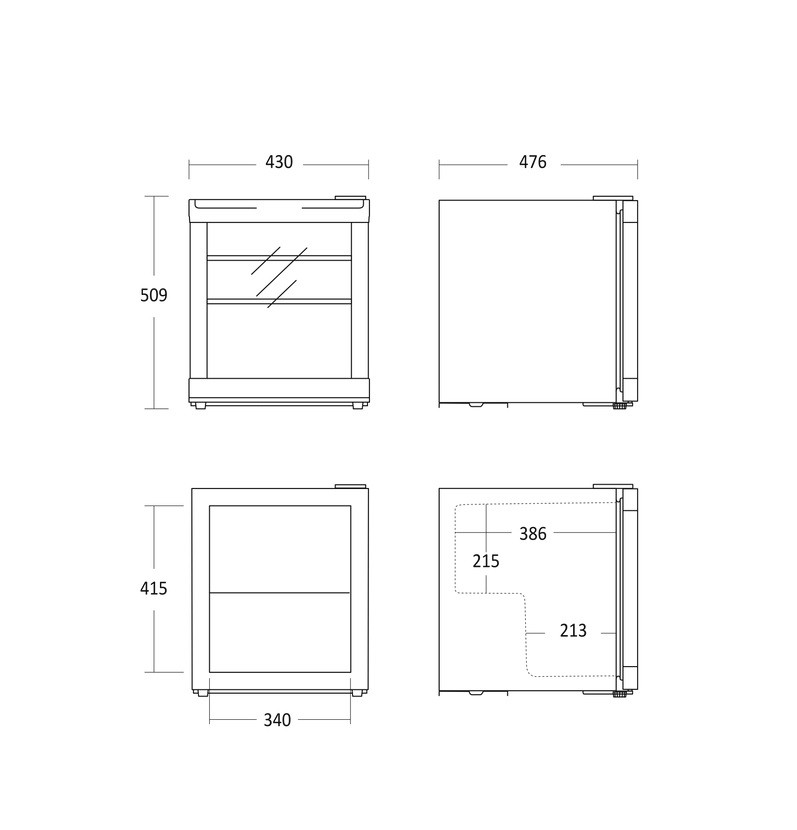 Reklamní barová chladnička CoolCube určená k umístění pod, nebo na barový pult s integrovaným madlem nabízí skladovací kapacitu 55l. Chladnička má elegantní černý interiér s jednou pevnou černou policí. Bez vnitřního osvětlení. Typ chladiva R600a.