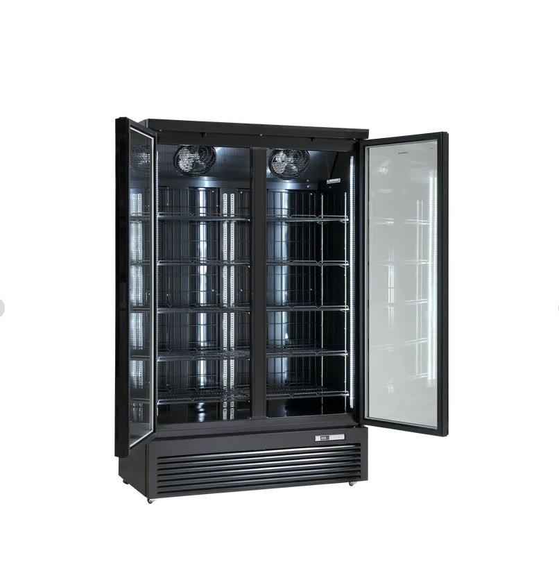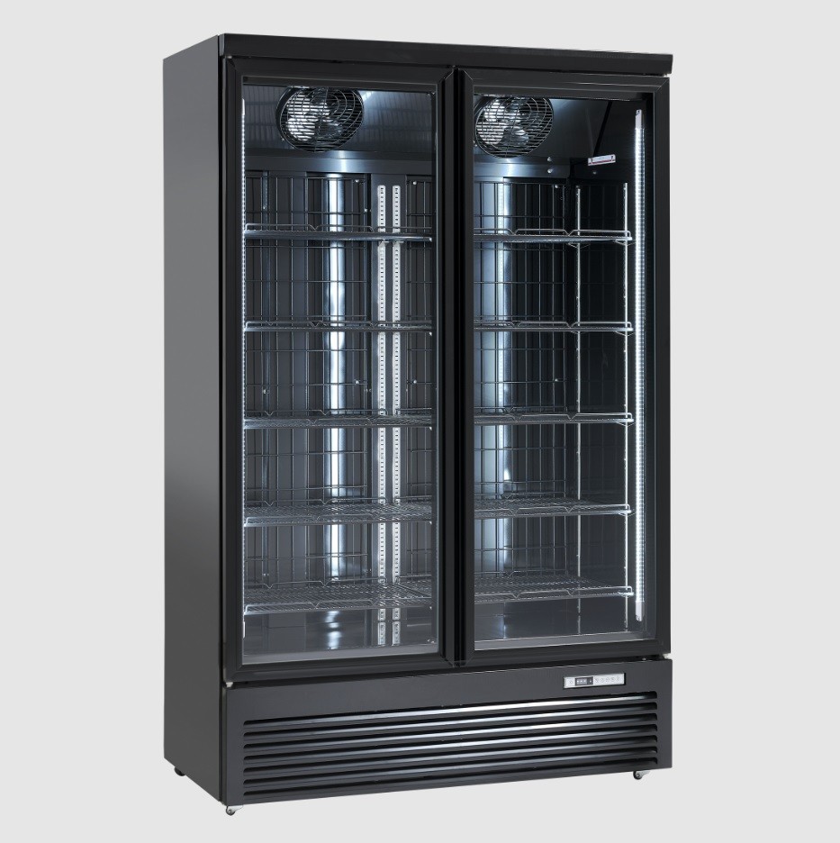 Modernizovaný prosklený mrazák Scandomestic KF 1006 BE nabízí skladovací kapacitou 1006l.