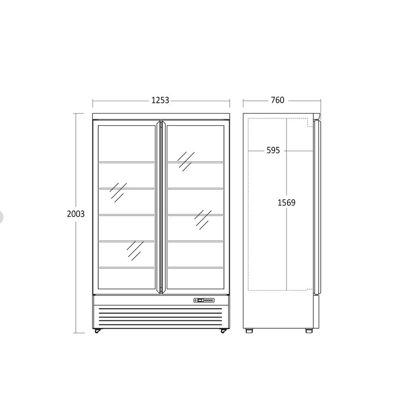 Prosklený mrazák, 1006l Celý popis