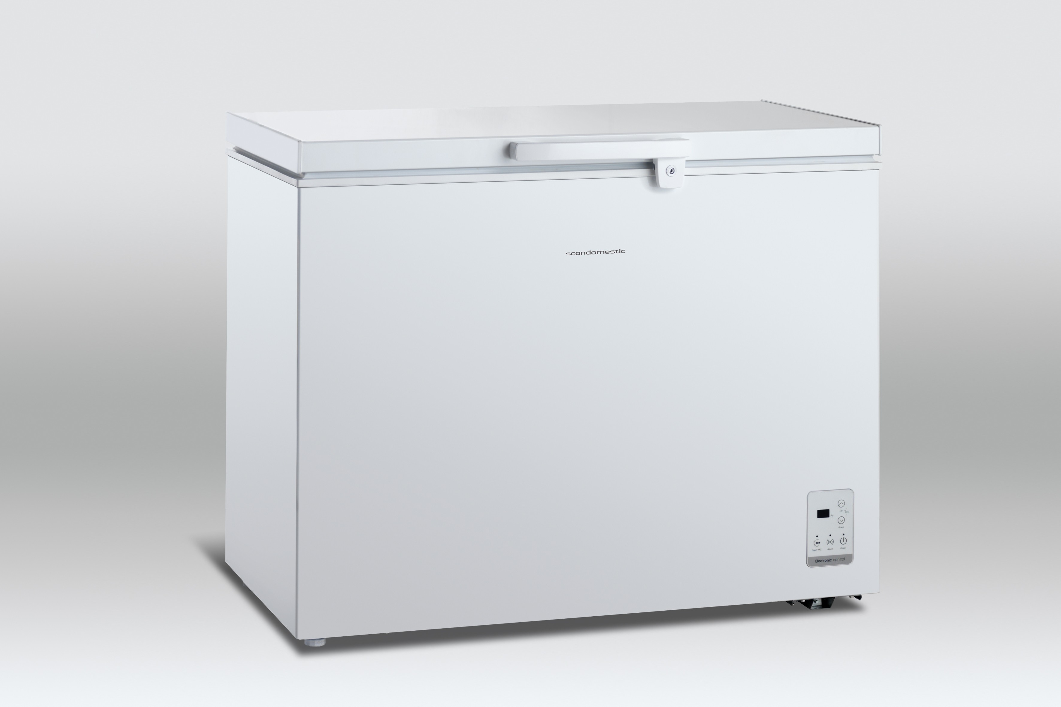 Bílá mrazicí truhla Scandomestic SB 300 W s plným odklopným víkem a dvěmi koši nabízí skladovací kapacitu 292l. Tento typ nahradil starší provedení SB 300-1.