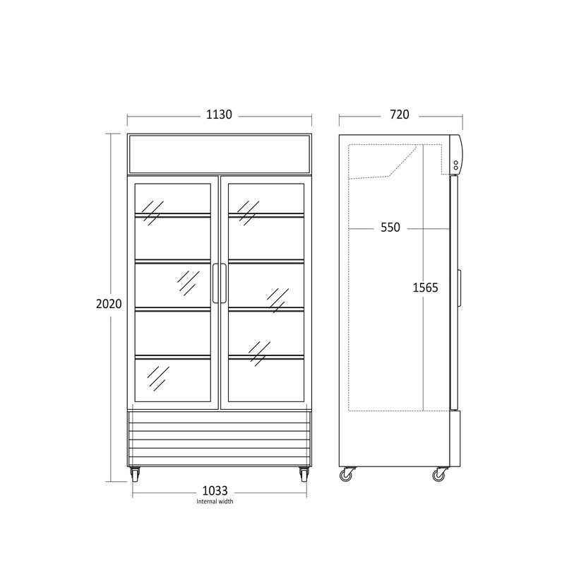 Chladnička je určena k prezentaci, skladování a prodeji chlazených nápojů. Díky své velikosti je chladnička určena především do gastro provozů s dostatkem prostoru. Pro snadnou manipulaci je chladnička vybavena 4 kolečky s velkým průměrem. Přístup do vnitřního prostoru skrze dvojci prosklených křídlových dveří. Vnitřní prostor je osvětlen výkonným LED osvětlením. Chladnička je dále vybavena 8 výškově nastavitelnými policemi a zámkem na klíč.