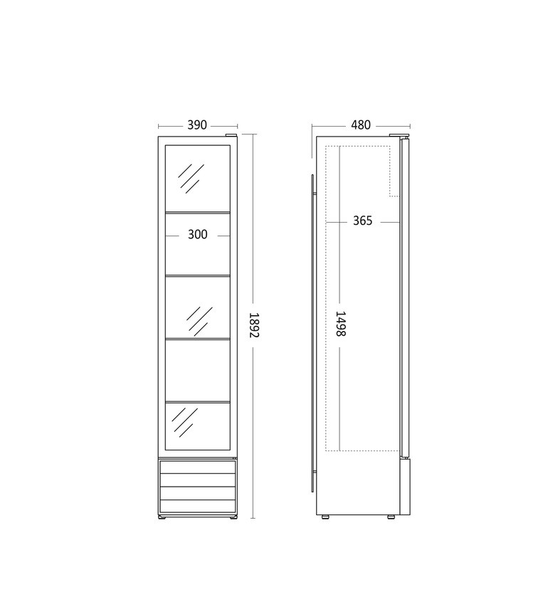 Chladnička je vhodná pro veškeré gastronomické provozy, které nabízejí chlazené nápoje. Vnitřní prostor chladničky je vybaven LED osvětlením a drátěným systémem 5 polic. Police jsou výškově nastavitelné. Chladnička je vybavena 4 kolečky pro maximální usnadnění případné manipulace. Chladnička je vhodná i k umístění v restauracích, protože provozní hlučnost dosahuje 50dB. Chladnička využívá oběhového chlazení (to znamená chlazení s ventilátorem). Chladný vzduch ve vnitřním prostoru cirkuluje a tím je dosažena rovnoměrná teplota v celém prostoru a rychlost dosažení požadované teploty je zvýšena.
