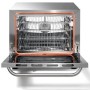 Profesionální konvektomat Sirman Aliseo 2/3. Vyroben kompletně z nerezové oceli. Komora má zaoblené rohy pro bezproblémové čištění a zamezení kontaminace. Dvířka s dvojitým sklem. Interier je osvětlen dvojicí lamp. Rozvod vzduchu zajišžuje jeden ventilátor. Teplotu lze regulovat v rozmezí 25 / 300 °C. V interieru se nachází čtyři vajímatelné police. Rozestup mezi policemi je 8 cm.