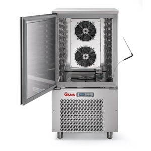 Vysoce efektivní šokovač Sirman Dolomiti Galateria. Jednoduché ovládání pomocí programovatelného ovládacího panelu. Navržen pro deset gastronádob 1/1. Vyroben kopletně z nerezové oceli. Vyhřívané těsnění dveří zabraňující přimrznutí dveří. Nastavitelná vzdálenost mezi policemi. Dokáže zchladit až 25 kg výrobku z teploty 70°C na 3°C za 90 minut nebo zmrazit 15 kg výrobku z teploty 70°C na -20°C za 240 minut. Funkce šokové zchlazení, zmrazování, hard a hold. Jako chladivo používá plyn R404A. Dodáván v třífázovém (400V) zapojení. Možnost dodat s tepelnou sondou.