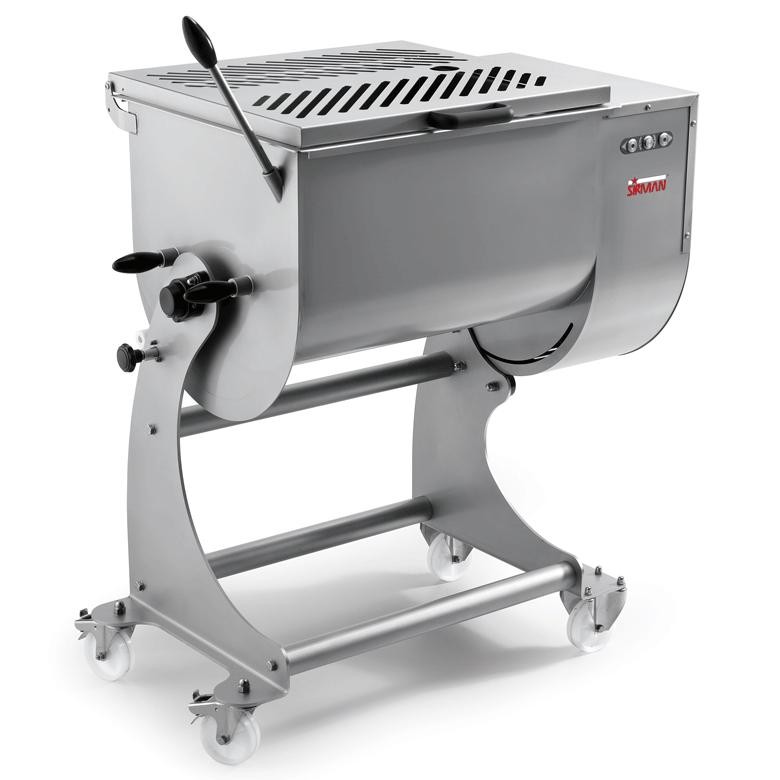 Profesionální míchačka masa IP 80 XP B/a. Tělo moderního designu je vyrobeno z nerezové oceli. Míchací nádobu je možné vyklápet do strany. Pro usnadnění vyprázdnění se nádobá může uzamknout v určité poloze. Míchačka disponuje míchacím systémem se dvěmi rameny. Ramena se dají vyjmout i bez použití nářadí. Převodovka v olejové lázni. Stupeň krytí IP 67. Kryt nádoby je vybaven bezpečnostním mikrospínačem. Minimální napnění je 40% z maximální kapacity. Tento míxhač se hodí pro středně velké provozy.
