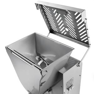 Profesionální mlýnek na maso a míchačka masa Sirman Master 90 Y12 HP 5. Stroj je designován pro maximální efektivitu práce. Masivní konstrukce na kolečkách je celá z nerezové oceli. Hlava a vnitřní komponenty jsou též z nerezové oceli. Hlavu i vnitřní komponenty lze snadno demontovat bez použití nářadí. Stroj funguje perfektně i v případě, že je produkt zpracováván více než 2x. Stroj má dva nezávisle motory pro míchačku a mlýnek.Vzduchový píst pro asistované otevírání víka. Stroj má vodotěsnou převodovku v olejové lázní. Standartně dodávaná šajba má průměr 4,5mm. Stupeň krytí IP 67. Hodinová produkce dosahuje až 1200 kg. Tento mlýnek se hodí do nepřetržitého provozu.