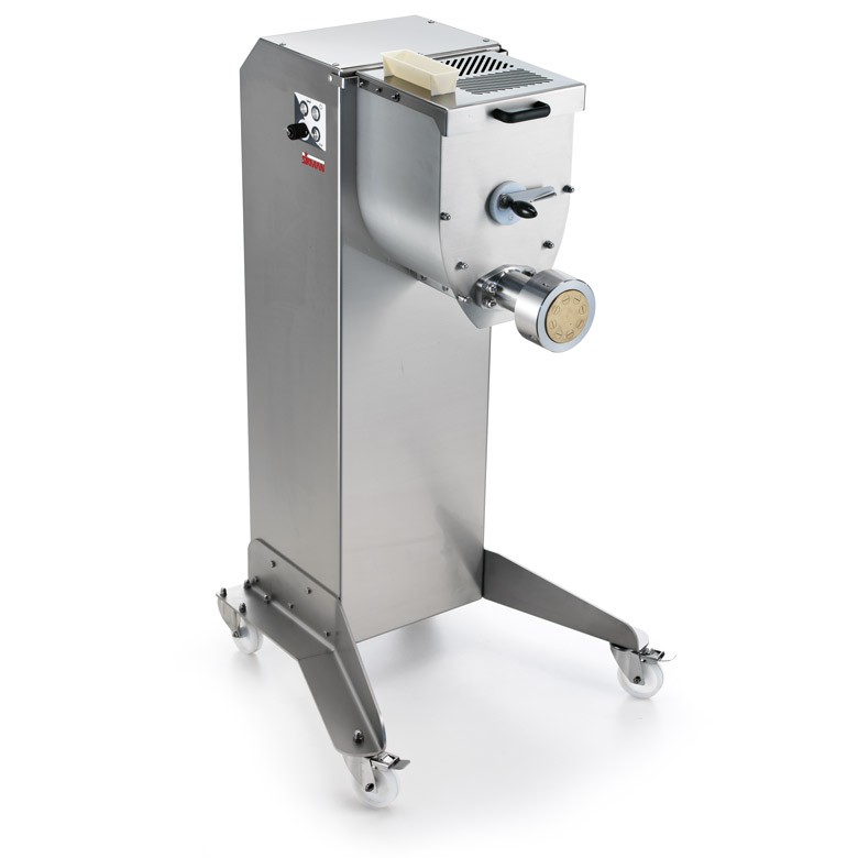 Profesionální výrobník tlačených těstovin v celonerezovém provedení. Nádoba výrobníku má kapacitu až 9,8kg těsta. Hlavní výhody výrobníku jsou snadná údržba a obluha. Matrice jsou vyrobeny z poniklovaného bronzu a mají ø 100mm. Výrobník je vybaven kovovou mřížkou nádoby, která umožňuje přidávání ingrediencí za chodu. Výrobník je možné dodat v 230V nebo 380V zapojení. Výrobník je standartně dodáván bez tvarovacích matric.