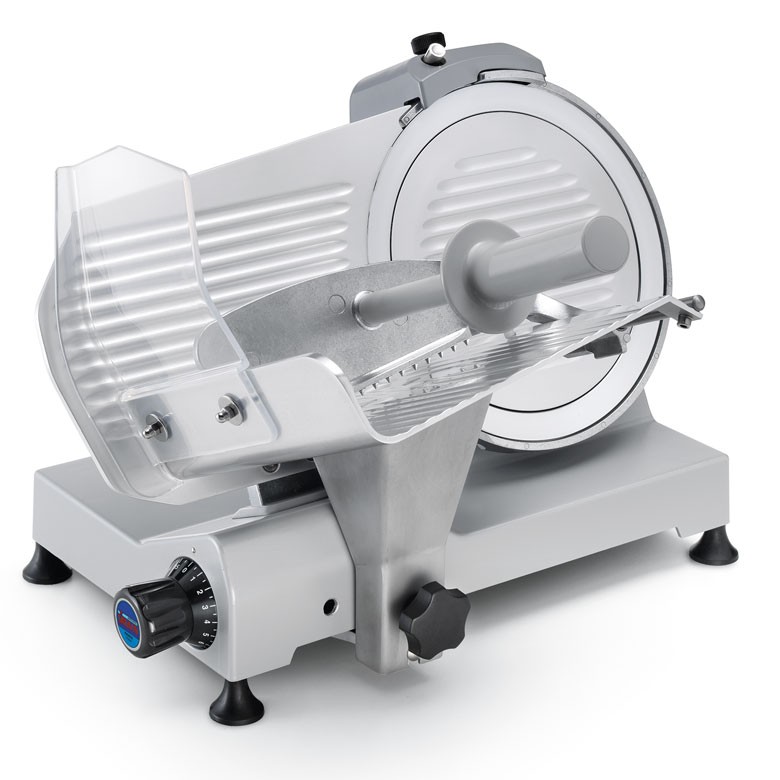 Nářezový stroj Smart 250, určený do lehkého provozu, je vyroben z anodizované hliníkové slitiny, má silný a tichý asynchronní motor, ochranný kryt kráječe a kotoučový nůž se sklonem 25°. Kluzné plochy pojezdu jsou automaticky promazávány. Jednoduchá demontáž a snadné čištění. Verze Perla má plastový otočný knoflík nastavující tloušťku řezu, gumové nožičky, plastová tlačítka bezpečnostní třídy IP 44 a ochranný kryt motoru. Průměr nože - 250mm Maximální tloušťka řezu - 13mm