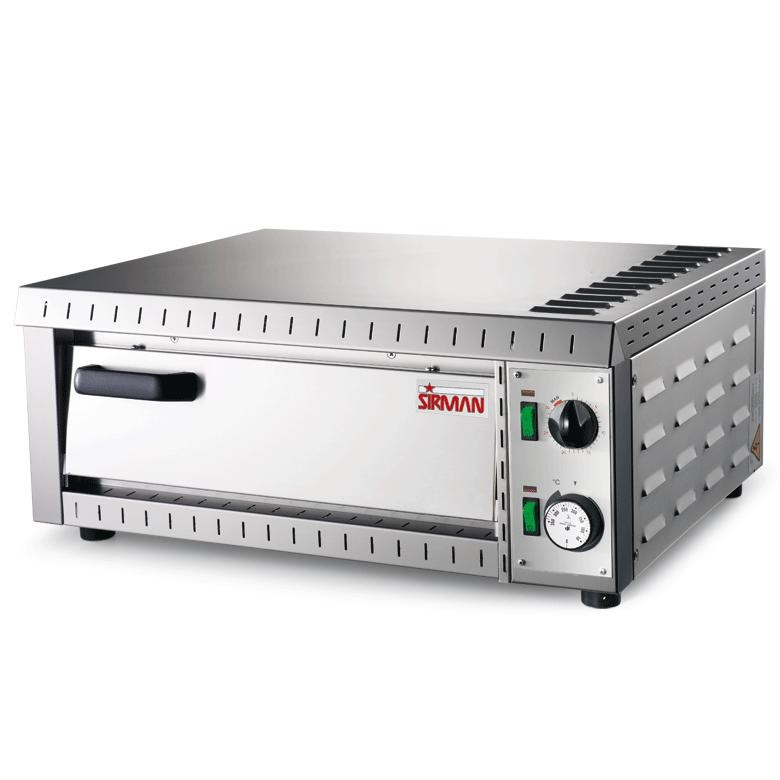 Profesionální jednoúrovňová pec na pizzu Sirman Stromboli. Pec je vyrobena z nerezové oceli. Vnitřní rozměry trouby jsou 410x360x80 mm. Pizza se peče na žáruvzdorné kamenné desce. Deska rovnoměrně distribuuje teplo, to zaručí vždy rovnoměrné propečení. Trouba disponuje dvojící topných těles. Topná tělesa jsou odolná proti poškození. Horní a spodní topná tělesa lze zapnout nezávisle na sobě. Do trouby se vejdou 2 pizzy ø ≤ 225 mm nebo 1 pizza ø ≤ 360 mm. Teplotu pece lze regulovat v rozmezí 50 až 350 °C. Dodávaná pouze v jednofázovém (230V) provedení.