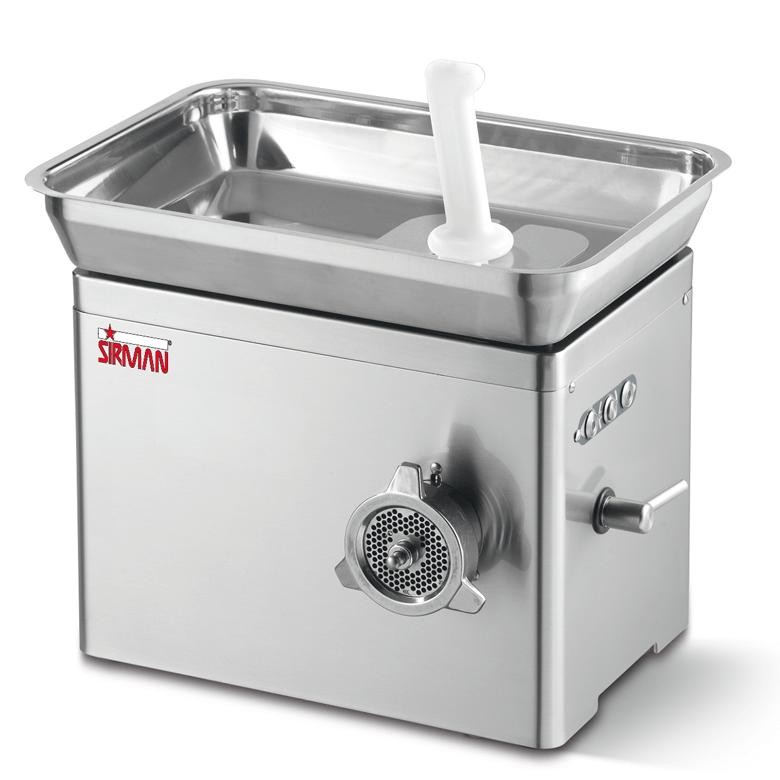 Profesionální mlýnek na maso Sirman TC 22 Nevada. Tělo stroje je vyrobeno z nerezové oceli. Velké rovné plochy usnadňují čištění stroje.Hlava je vyrobena z nerezové oceli. Stroj má páku pro rychlé uzamknutí hlavy.Motor má stupeň izolace IP 55. Motor se sněkovým převodem v olejové lázni. Výrobní kapacita je až 350 kg/h. Tento mlýnek se hodí pro středně velké provozy. Stupeň krytí IP 67.