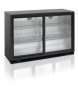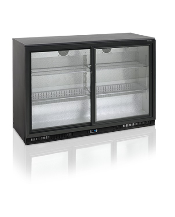 Spotřebič černé barvy s interiérem z nerezové oceli nabízí skladovací kapacitu 320l. Má dvoje posuvné dveře s dvojitým zasklením, 4 výškově nastavitelné nožičky zajišťující snadnou dostupnost při úklidu pod chladničkou a zámek pro bezpečné uskladnění zásob. Vnitřní prostor je osvětlen LED páskem, který usnadní orientaci a zlepší viditelnost skladovaných produktů. Standardně je vitrína vybavena 4 nastavitelnými policemi, funkcí automatického odtávání a elektrickým nebo mechanickým termostatem.