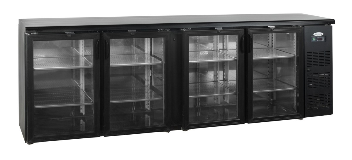 Chladnička černé barvy s nerezovým interiérem nabízí skladovací kapacitu 630l. Má 4 křídlové dveře s dvojitým izolačním sklem, 10 výškově nastavitelné nožičky zajišťující snadnou dostupnost při úklidu pod chladničkou a zámek pro bezpečné uskladnění zásob. Vnitřní prostor je osvětlen LED páskem, který usnadní orientaci a zlepší viditelnost skladovaných produktů. Standardně je vitrína vybavena 8 nastavitelnými policemi z nerezové oceli a elektrickým termostatem.