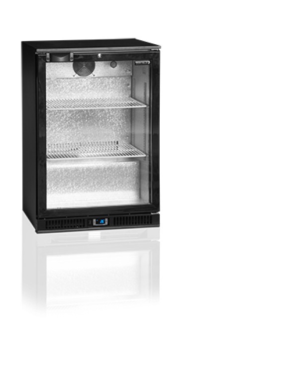 Výstavní nápojová chladicí vitrína Tefcold DB125H černé barvy má samozavírací dveře s dvojitým sklem. Nápojová chladnička nabízí skladovací kapacitu 22l.