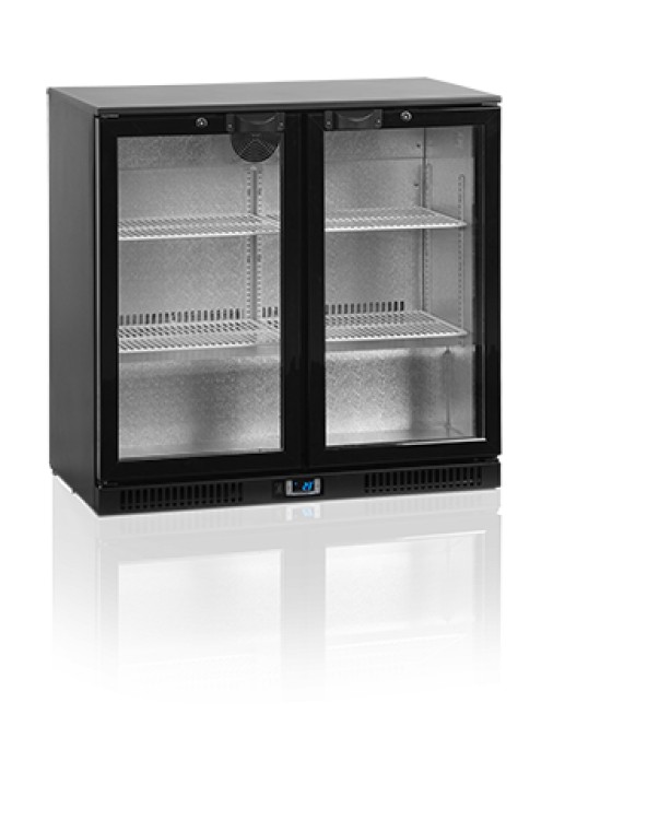 Výstavní nápojová chladicí vitrína Tefcold DB200H černé barvy má 2 křídlové dveře s dvojitým sklem. Nápojová chladnička nabízí skladovací kapacitu 191l.