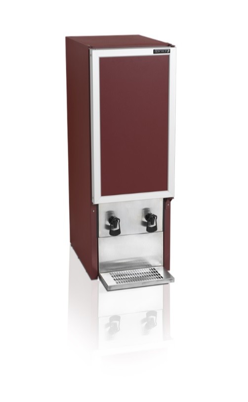 Vinotéka Tefcold DKS95-2/20L s exteriérem v barvě bordeaux s jednou chlazenou zónou o objemu 112l má tónované sklo, nerezový interiér a 1 křídlové samozavírací dveře s nerezovým rámem. Je vybavena 2 nerezovými policemi. Dále má prostor pro 2 x 10l boxy se stáčeným vínem s vývodem k vlastní stáčecí pípě. Pod pípami je nerezová odkapávací plocha. Automatické odtávání a nastavitelné nožičky jsou součástí základní výbavy.