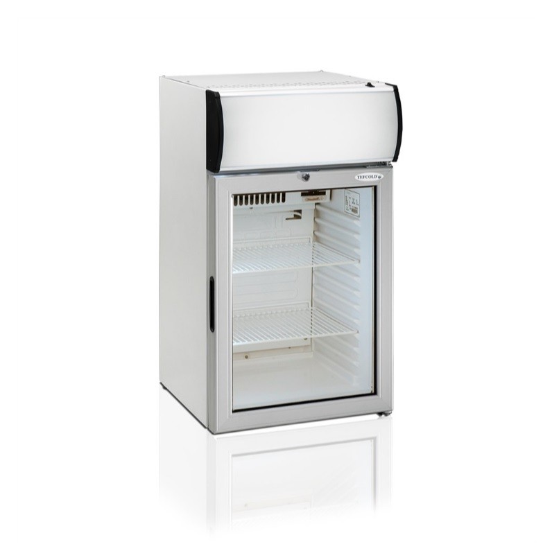 Chladnička má LED vnitřní osvětlení, LED osvětlení reklamní nástavby, 1 prosklené křídlové samozavírací dveře, 2 nastavitelné police, 4 nastavitelné nožičky, automatické odtávání a zámek.