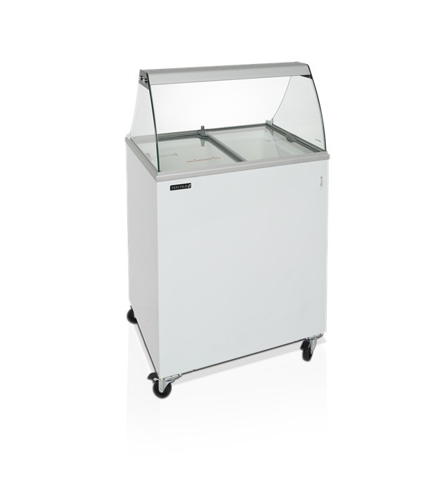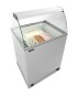 Profesionální mrazicí truhla bílé barvy se skleňenou nástavbou, která je určena jako levnější náhrada drahých zmrzlinových výdejníků. Truhla je určena do malých provozů, které si nemohou dovolit umístit velký zmrzlinový výdejník.