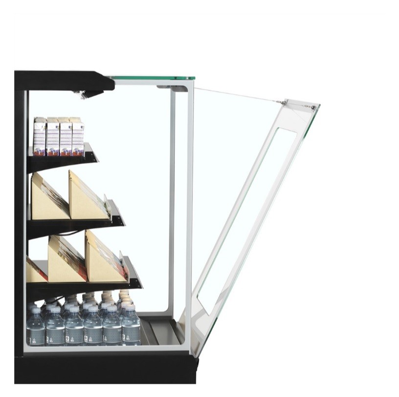 Vitrína je vhodná pro vystavení čerstvého masa, mléčných výrobků nebo nápojů a dalších chlazených výrobků. Otevřená přední strana zajišťuje pohodlný přístup zákazníka k vystavovaným potravinám. Obsluha však zboží může doplnit i ze zadní strany. Dále vitnína disponuje 3 nastavitelnými policemi s funkcí naklápění pro lepší prezentaci skladovaných pokrmů. Vitrína je vybavena 4 nastavitelnými nožičkami zajišťujících stabilitu. Interiér je nasvícen LED pásky a nechybí teplotní displej. Postraní roh je k dispozici pro spojení 2 skříní nebo vytvoření ostrůvku.